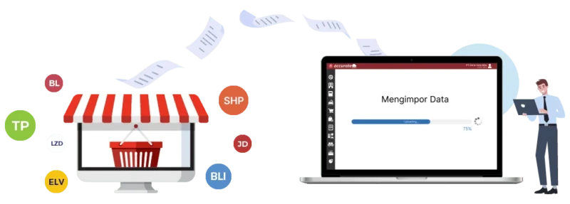 Impor ribuan penjualan dari Tokopedia, Shopee, Bukalapak, Lazada, JD.id, Blibli, dan Elevenia ke Accurate Online, tanpa ribet.